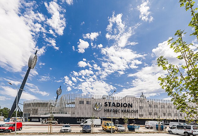Pohled na nový stadion Hradce Králové, který má před začátkem ligy potíže s kolaudací stavby.