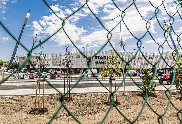 Pohled na prozatím oplocený nový stadion Hradce Králové