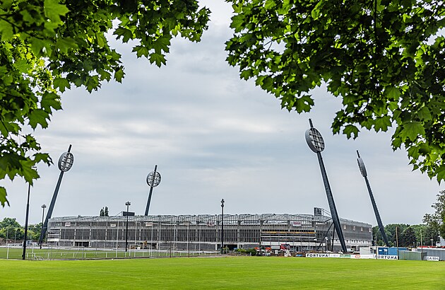 Multifunkční aréna v Hradci Králové dostala plášť z tahokovu.