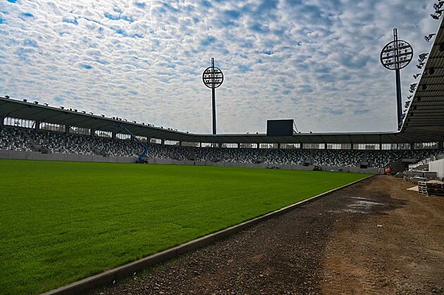 Trávník v aréně zaseli 3. června 2023, koncem června se už zelená.