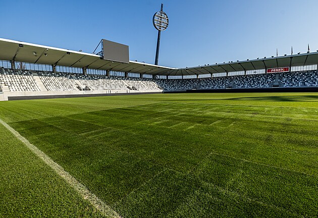 Nový trávník z Itálie položili pod jižní a západní tribunou, kde schází slunce.