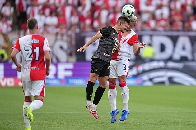 Hlavičkový souboj mezi slávistickým Tomášem Holešem a hradeckým Václavem Pilařem