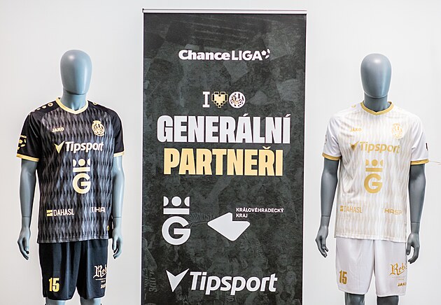 FC Hradec Králové se pár dní před zahájením nejvyšší české fotbalové soutěže pochlubil novými dresy v tmavé domácí variantě a světlé pro venkovní zápasy. (15. července 2025)