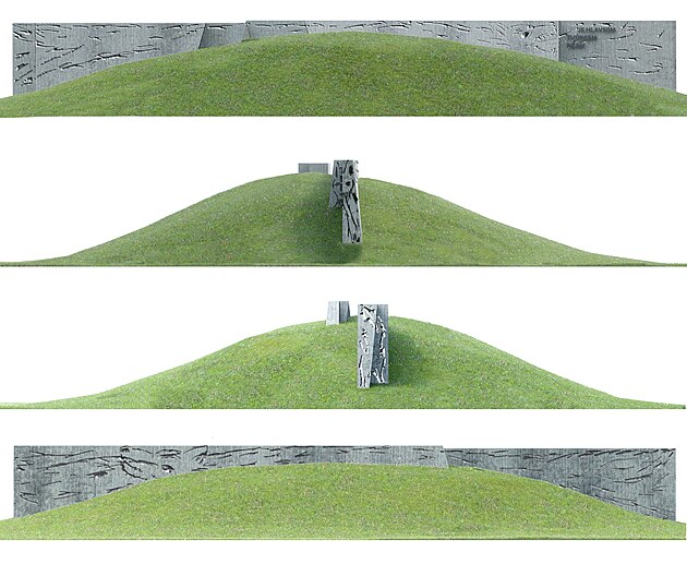 Návrh ateliéru collcoll vyhrál soutěž na proměnu komunistické Galerie cti. Shora: přední část zdi, boční pohledy, zadní část zdi.