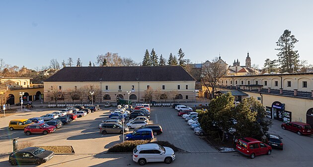 V hradeckých Gayerových kasárnech zatím parkují auta. (19. února 2025)
