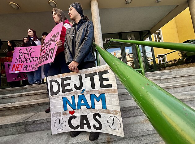 Před gymnáziem v Hostinném začal studentský protest proti rušení osmiletého oboru. (2. října 2025)