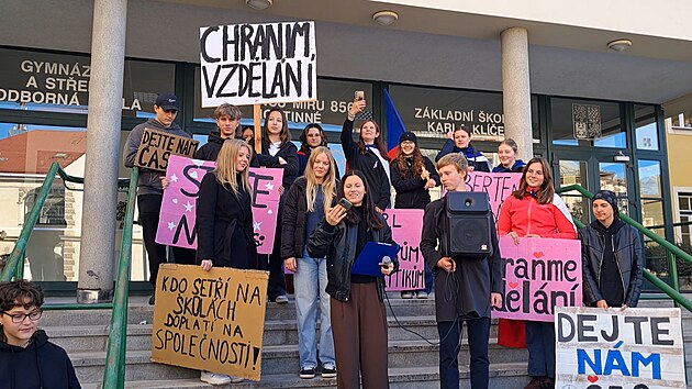 Studenti v Hostinném protestují proti rušení osmiletých gymnázií