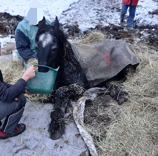 Kůň zapadl po krk do jímky, koukala mu jen hlava. Hasiči ho vytáhli jeřábem![]() |