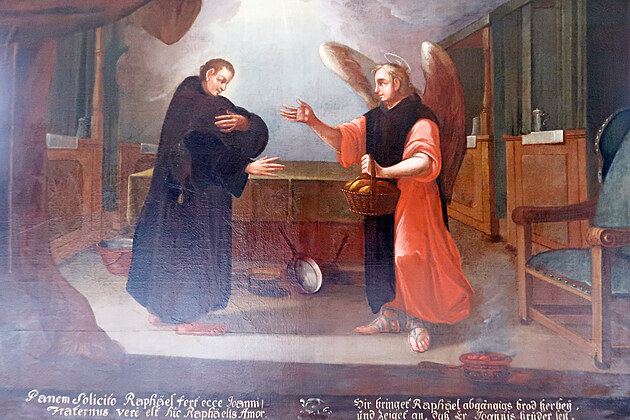 Jeden ze zrestaurovaných obrazů z cyklu Ze života sv. Jana z Boha, který visí na chodbě v prvním patře hospitálu Kuks.
