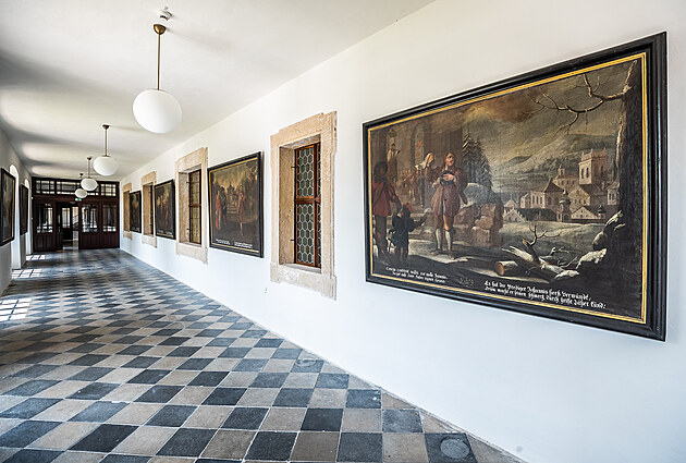 Soubor 37 obrazů cyklu Ze života sv. Jana z Boha na stěnách 1. patra severního křídla hospitálu Kuks