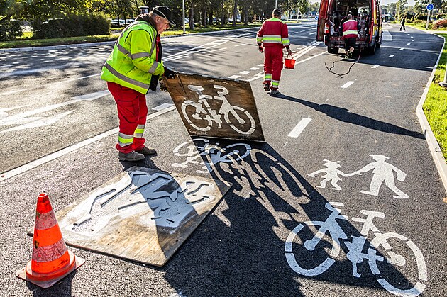 Část stavby klíčové hradecké křižovatce Mileta je hotová. Stavbaři pustili dopravu na Hradeckou ulici, která vede ke kampusu UHK a Farmaceutické fakulty UK (30.9.2024).