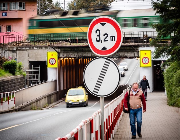 Cestu na dálnici brzdí z centra Hradce nízký podjezd pod tratí.
