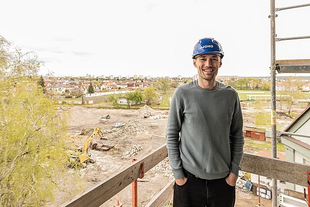 Developer Tomáš Vrbický na stavbě Cihlovky v hradeckých Kuklenách (26. června 2023)