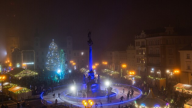 Dokonce zadarmo je chlazené kluziště kolem mariánského sloupu. Už loni potěšilo malé kluziště s umělou hmotou, ale přírodní led nahradit nelze. Funguje tu i půjčovna bruslí za 50 korun a hned první den kolem modře nasvíceného sloupu jezdilo několik stovek lidí.