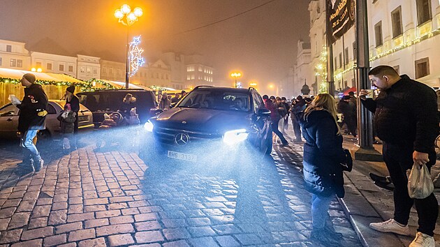 Doprava a parkování na Velkém náměstí je tentokrát nejzásadnější potíž trhů. Může sem vjet kdokoli, i když naděje na zaparkování je minimální. Ulice blíž k podloubí je správně uzavřená. Je tu dokonce i závora se stánkem pořadatelů. Jenže kolem Jezuitské koleje až ke katedrále svatého Ducha se dál jezdí i živelně parkuje.