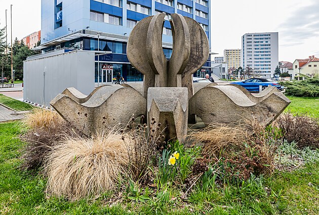 Před hotelem Alessandria v Hradci Králové stojí nový výdejní box. (8. dubna 2025)