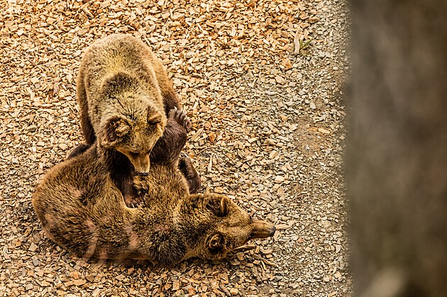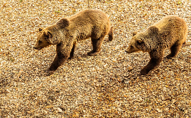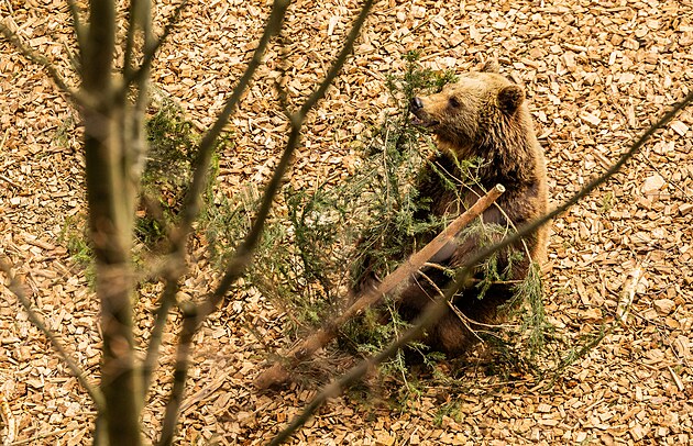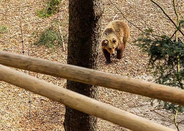 Návštěvníci Stezky korunami stromů pod Černou horou mohou pozorovat z nadhledu dva medvědy hnědé v novém výběhu. (24. března 2026)