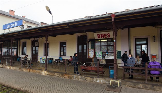 Nádraží v Jaroměři. Od pondělí začne výluka na trati do Hradce Králové. (14. dubna 2016)