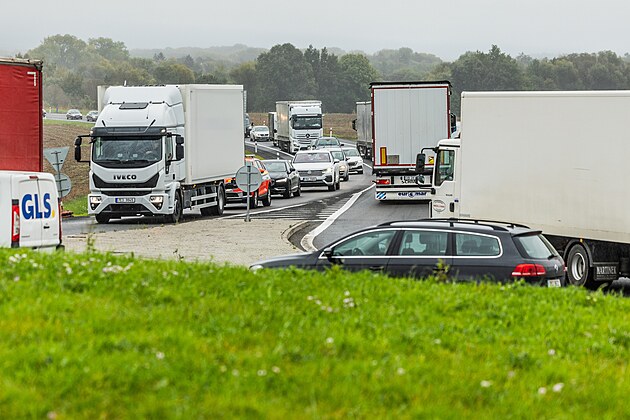 Doprava na novém obchvatu Jaroměře u sjezdu z dálnice D11 (4. října 2024)