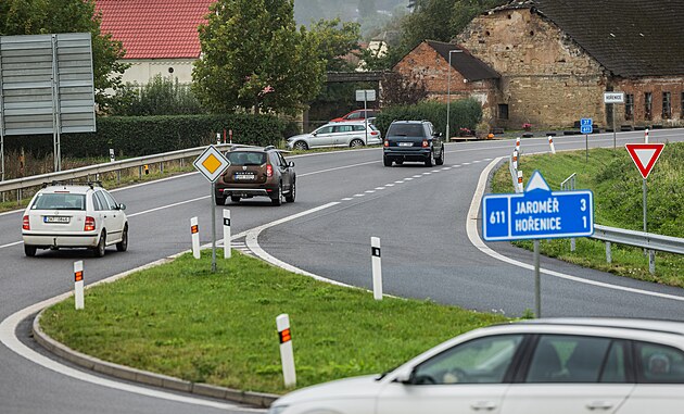 Výjezd z okružní křižovatky u Hořenic směrem na Jaroměř (4. října 2024)