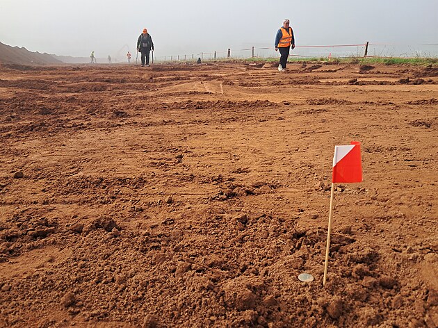 Archeologové s detektory prozkoumávají trasu D11 u Stříteže na Trutnovsku. (19. září 2025)
