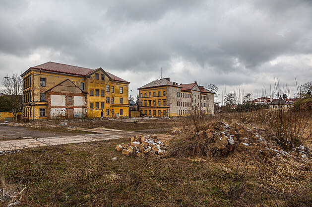 Z celého kasárenského areálu v Jičíně zbyly pouze dvě budovy, ve kterých investor vybuduje domov pro seniory a Alzheimer centrum. (7. dubna 2021)