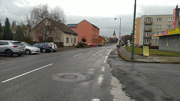 Příjezd do Jičína Ruskou ulicí je plný záplat. (9. února 2024)