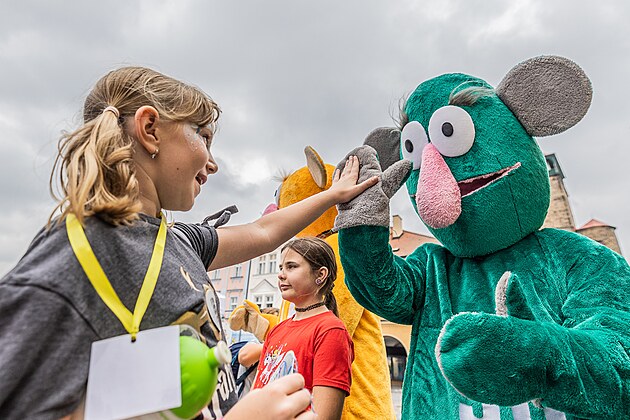 Program pohádkového festivalu přilákal děti na jičínské Valdštejnovo náměstí. (8. září 2022)
