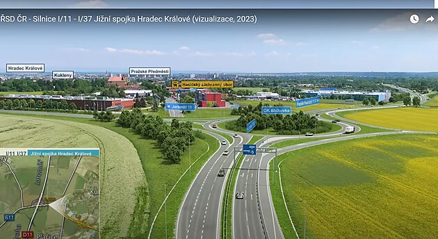 Vizualizace jižní spojky od křižovatky Bláhovka, v pozadí zaslepená Pražská ulice.