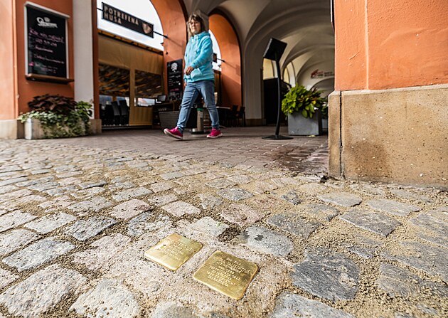 V dlažbě na Velkém náměstí v Hradci Králové přibyly dva kameny zmizelých pro Josefa a Kláru Tausikovy. (1. října 2024)