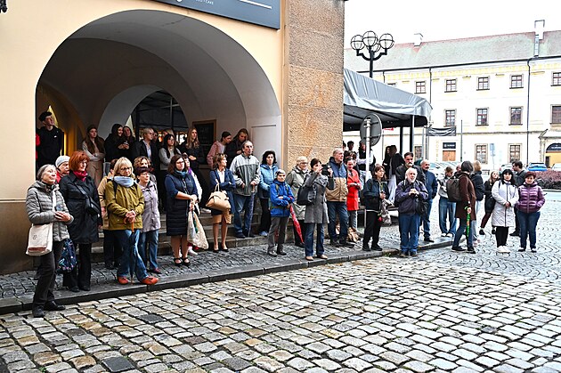 V dlažbě na Velkém náměstí v Hradci Králové přibyly dva kameny zmizelých pro Josefa a Kláru Tausikovy. (2. října 2024)