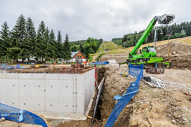 Základy pro novou spodní stanici lanovky, kde budou také sociálky, sklady či pokladna.