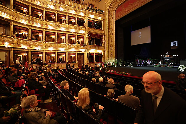 Rozloučení se zesnulou Soňou Červenou přihlíželo naplněné hlediště Národního divadla (16. května 2023).