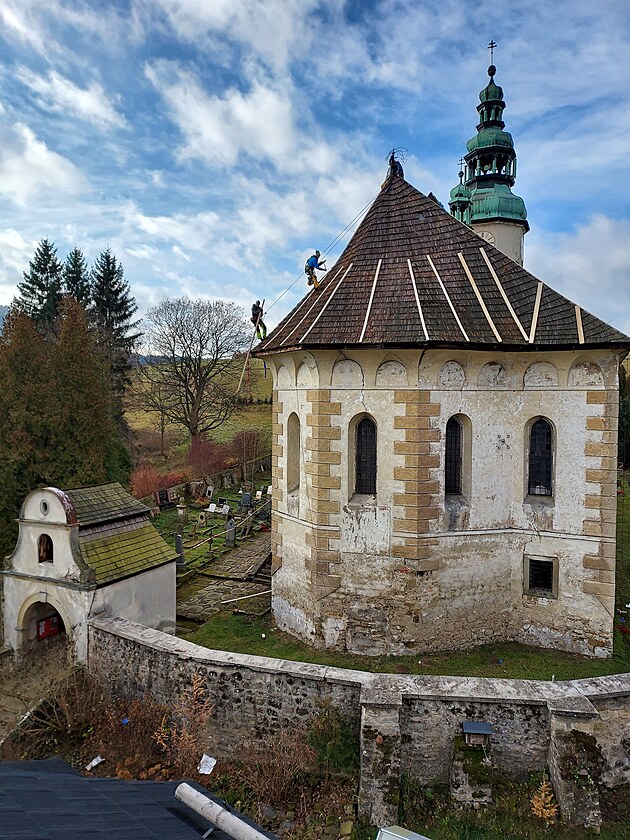 S kamarády horolezci zakryli plachtou střechu kostela, aby vydržela několik dalších let do větší opravy.