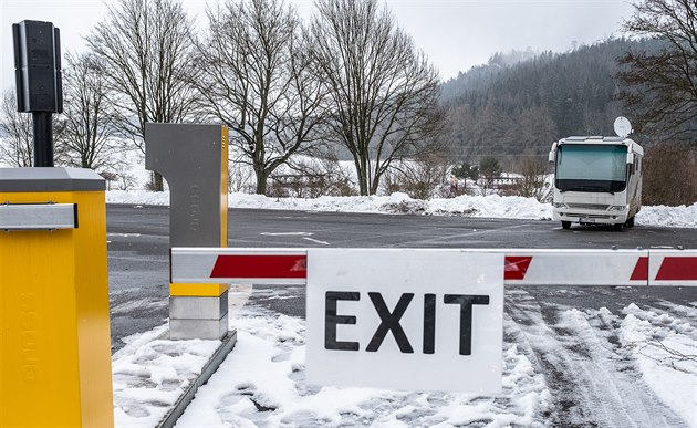 Rozlehlá parkoviště u Adršpašských skal jsou momentálně téměř prázdná (5. 1. 2021).