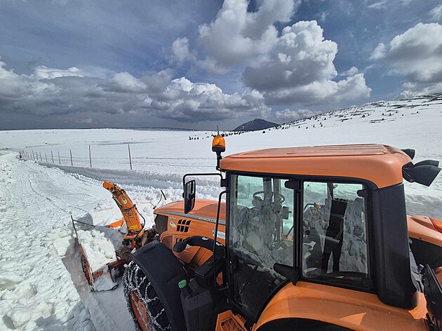 Sněžná fréza na dohled od Sněžky (14. dubna 2025)