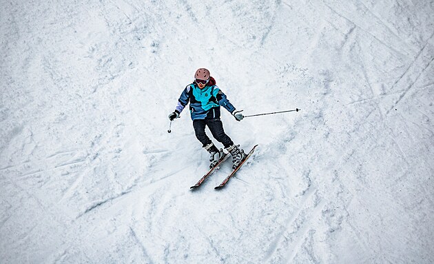 Na svahy do Pece pod Sněžkou vyrazily v dešti a větru jen desítky lyžařů a snowboardistů. (19. prosince 2024)