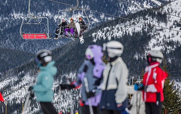Lyžaři na Medvědíně ve Špindlerově Mlýně (17. ledna 2025)