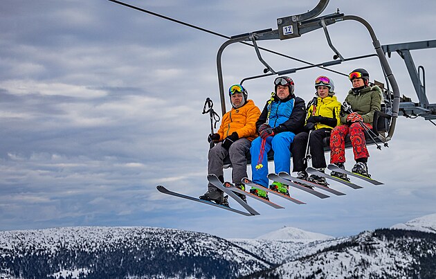Lyžaři na Medvědíně ve Špindlerově Mlýně (17. ledna 2025)
