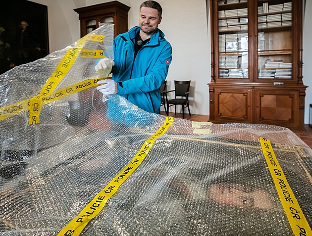 Kastelán Kuksu Libor Švec rozbaluje portrét Jana Michaela Šporka.