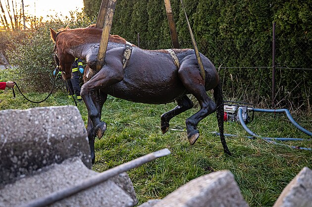 Hasiči v Bolehošťské Lhotě zachraňovali koně z jímky. (31. října 2025)