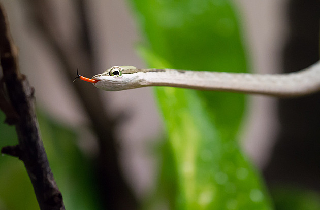 „Daří se jim výborně. Ochotně přijímají malé žabky, gekony a výjimečně i malé rybky,“ popisuje ošetřovatel Martin Smrček, který o jedovaté liánovce pečuje už od roku 2015, kdy do safari parku přišla první zvířata přímo z Jihoafrické republiky, kde se živí především drobnými plazy.
