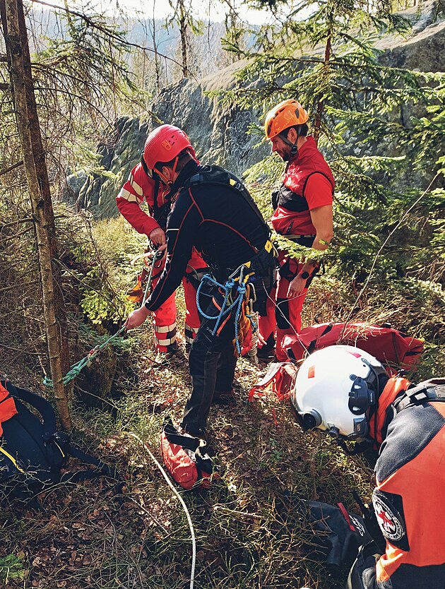 Žena se zranila v Broumovských stěnách nad Martínkovicemi, letěl pro ni vrtulník. (9. března 2025)