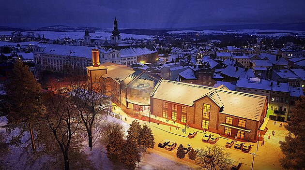Pohled od Schrollova parku. Autory studie přestavby broumovského pivovaru na ZUŠ jsou architekti Tomáš Vymetálek a Jan Hrubý.