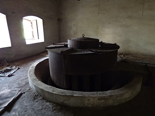 Vybavení hvozdu v pivovaru v Broumově, kde se sušil zelený slad. Na snímku je horní část topného tělesa pod spodní lískou.