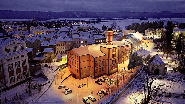 Pohled od klášterní zahrady, návrh přestavby broumovského pivovaru na ZUŠ