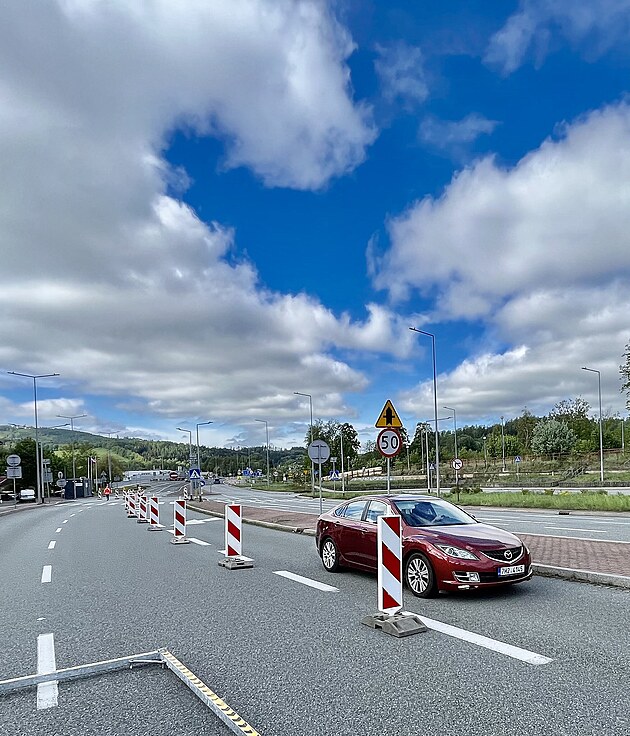Doprava směrem do Polska je na hraničním přechodu Náchod – Kudowa Słone svedena do jednoho pruhu s omezenou rychlostí, Poláci připravují vedle veterinární kontroly. (5. května 2025)