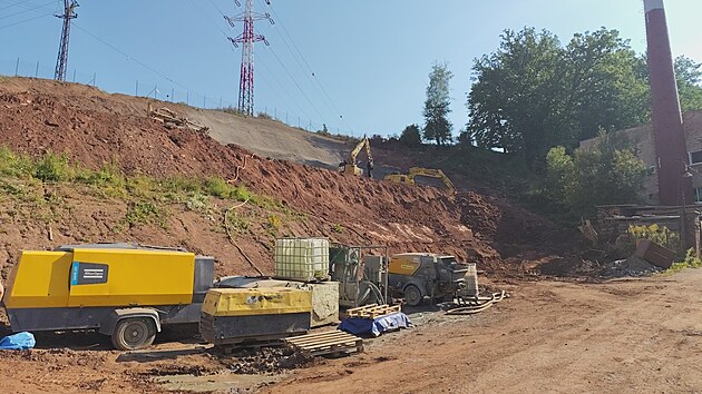Přípravné práce na tunelu v Dolní Radechové na budoucím obchvatu Náchoda (15. srpna 2025)