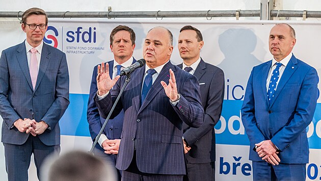 Zleva ministr dopravy Martin Kupka (ODS), generální ředitel ŘSD Radek Mátl, starosta Náchoda Jan Birke (SOCDEM), ředitel Státního fondu dopravní infrastruktury Zbyněk Hořelica a hradecký hejtman Petr Koleta (ANO)