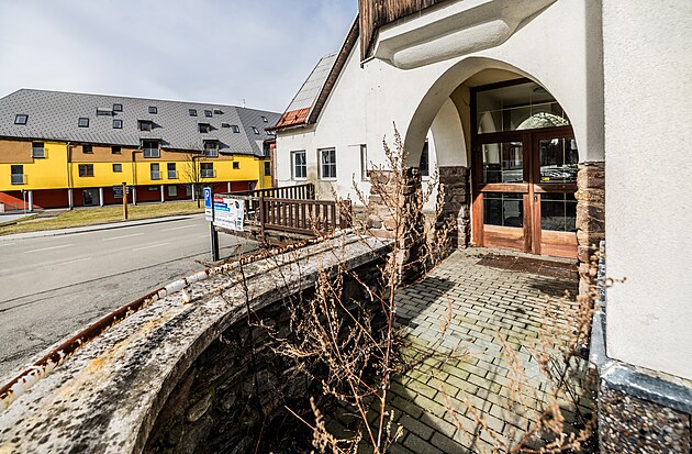 Zchátralý Národní dům v centru Deštného v Orlických horách